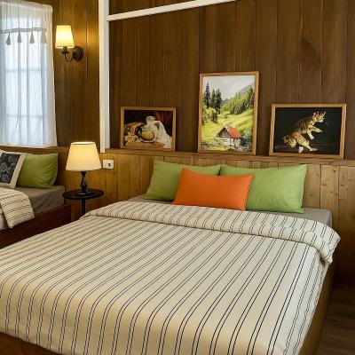 Diện tích:30 (m2) Phù hợp cho: 5 (Người) Giường: 1 giường đơn, 2 giường đôi lớn