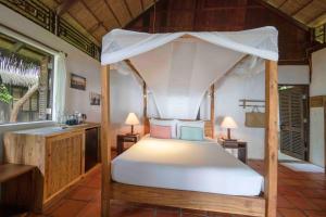 Những đợt gió thiên nhiên mát rượi thổi vào các phòng nghỉ và bungalow qua cửa chớp bằng gỗ. Giường 4 cọc, quạt trần và màn tránh muỗi bằng vải bông cũng được cung cấp cho khách. Tất cả các phòng và bungalow đều cho tầm nhìn ra quang cảnh biển hoặc vườn từ sân hiên. Vòi sen nước nóng đun nóng bằng năng lượng mặt trời được trang bị trong phòng tắm.