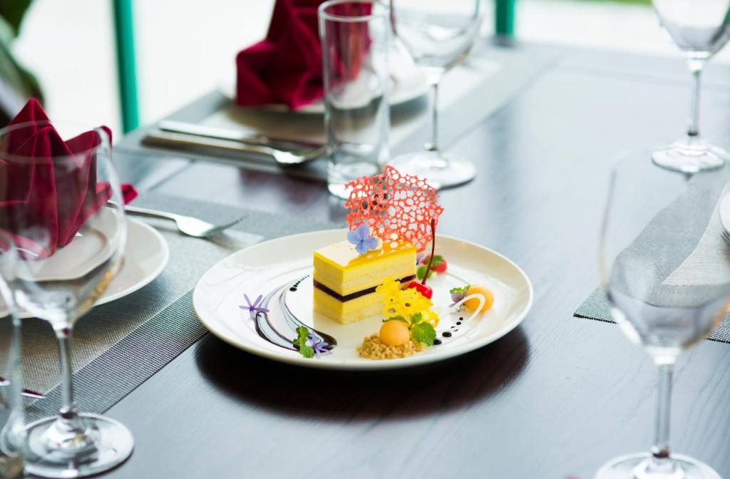 Phòng nghỉ tại đây được trang bị máy điều hòa, truyền hình vệ tinh màn hình phẳng, tủ lạnh, ấm đun nước, chậu rửa vệ sinh (bidet), máy sấy tóc, bàn, tủ để quần áo cũng như phòng tắm riêng với vòi sen và đồ vệ sinh cá nhân miễn phí. Du khách có thể ngắm nhìn quang cảnh núi non từ phòng nghỉ.