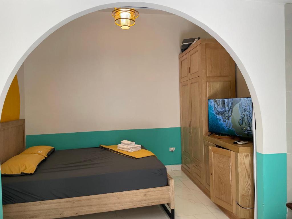 Chỗ nghỉ được trang bị TV màn hình phẳng.