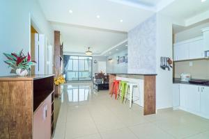 This spacious apartment comprises 4 living rooms, 3 separate bedrooms and 2 bathrooms with a shower and free toiletries. Guests will find a stovetop, a refrigerator, kitchenware and a microwave in the well-fitted kitchen. The apartment also provides guests with a barbecue. The air-conditioned apartment provides a flat-screen TV, a washing machine, a seating area, a dining area as well as sea views. The unit offers 5 beds.